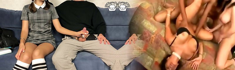 Neat Japanese uniform JK kneels down to a big cock man and gives a wealthy handjob service nipple munching