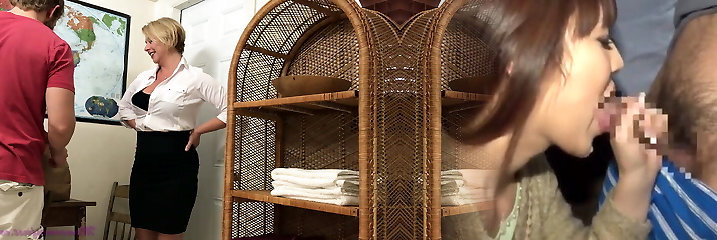 Super busty cougar Darla Crane and young chick give deep throat to nerdy college guy