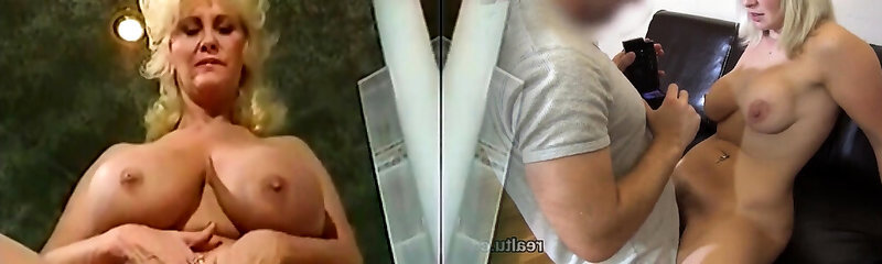 Blonde mature taunting her huge tits