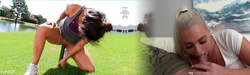 Sporty female in public with a immense zucchini in her cunt