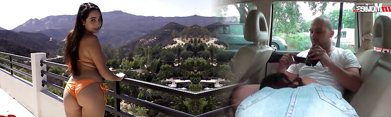 Insolent young slut with natural boobs nails car driver's hefty cumbot