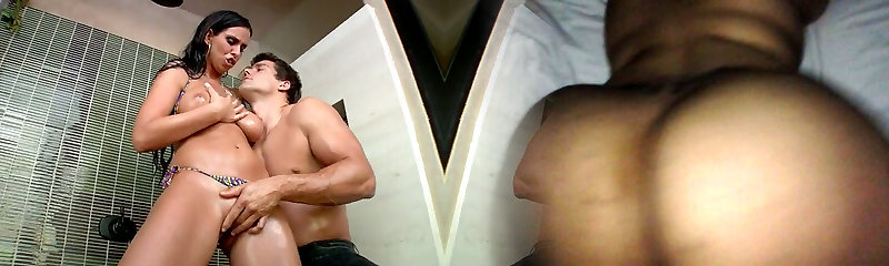 Alanah Rae's well-lubed up titties make a lucky man's boner pulsate