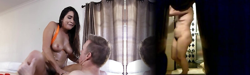 All-natural boobs model Karlee Grey gets oiled and fucked by a guy