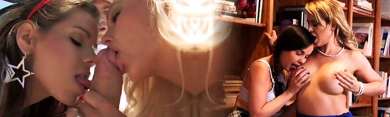 Two astonishing bitches blow one hard dick and get banged with it