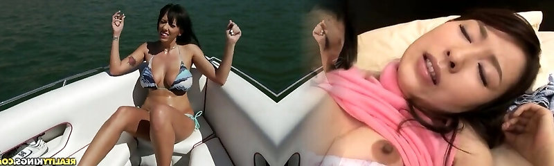 Slim brunette with big orbs gets fucked on a boat