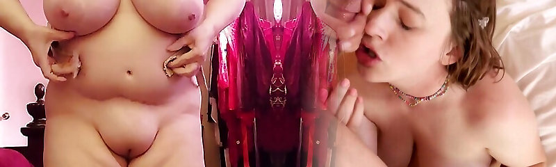Chubby fondling big melons when her shaved honeypot gets pounded hardcore