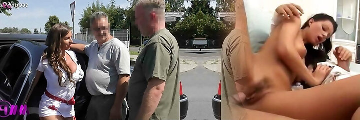Molten brunette with big ass has been picked for random insatiable sex in the car