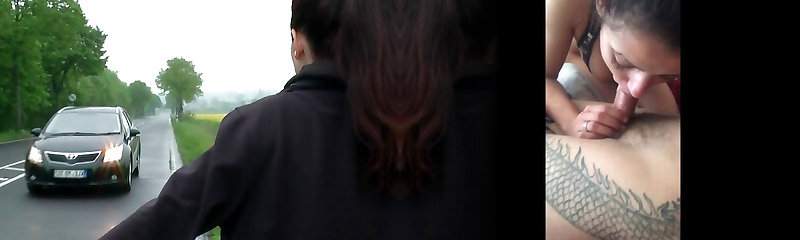 While driving she wants to play a muddy game, risky public outdoor sucking and plumbing Gf