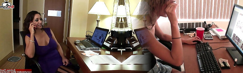 Busty fuckers give boobjob and take turns throating their manager' big fat cock