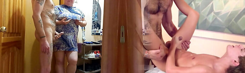 Wife watches her stepsister jerks off her husband on her donk
