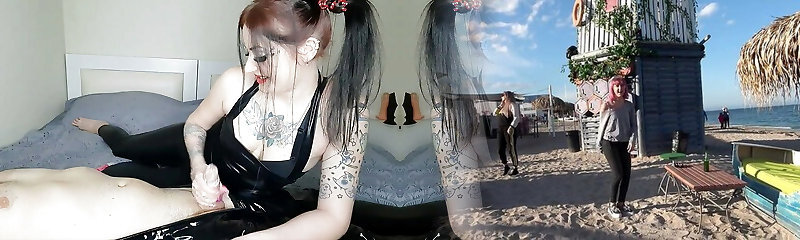 Hot femdom hj. Stunning beauty jerks off slave's dick. When the slave shoots a load in ecstasy, Dominatrix Nika does not stop