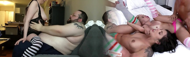 Lewd married fat couple has joy while spooning each other a bit
