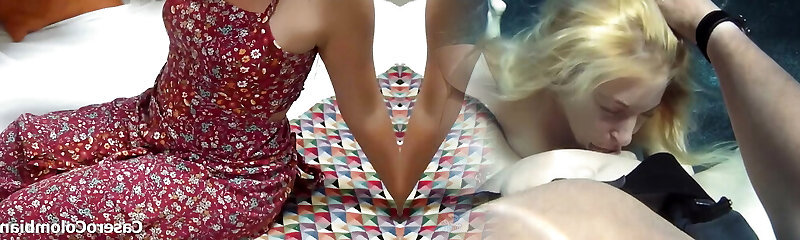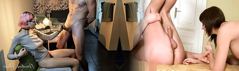 Cuckold husband shared wife with a friend. Bisexual threesome. Cuckold. Wifey makes her husband suck her lover