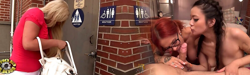 gloryhole fuck, hot milf gets horny at the toilet