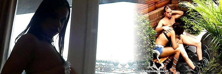 Latina brunette is fucked by a enormous dildo