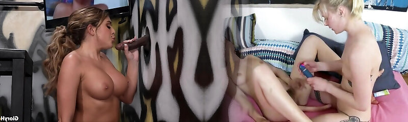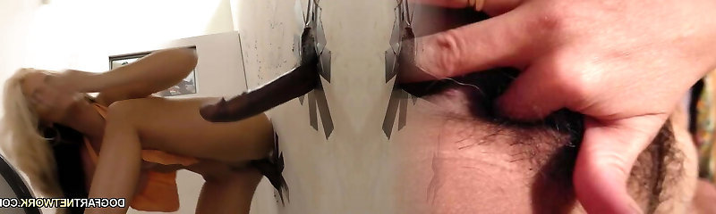 Adventurous nympho with gigantic ass uses glory hole BBC for twat drilling