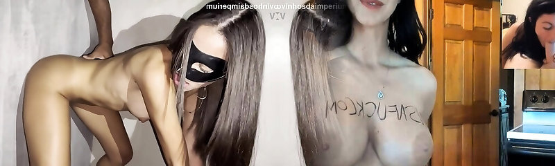 Slutty nymph with small tits sucking big dicks through gloryhole