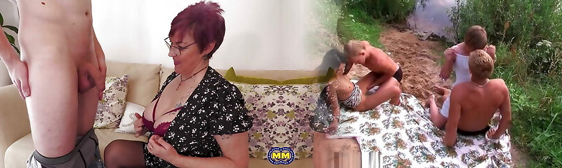 Two teenie boys share old mature woman