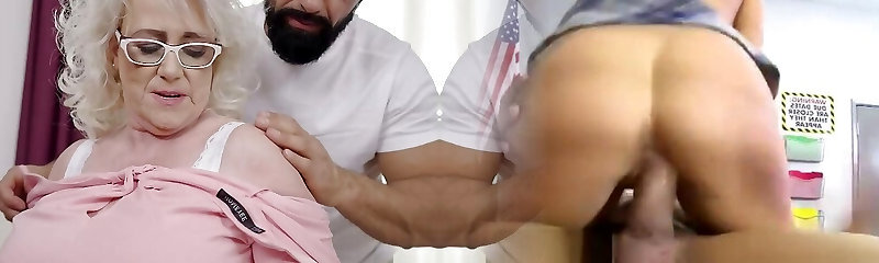 The mature and chesty mummy was treated to a threesome, with two anxious colleagues packing her up and making her guzzle - an amazingly crazy and dis