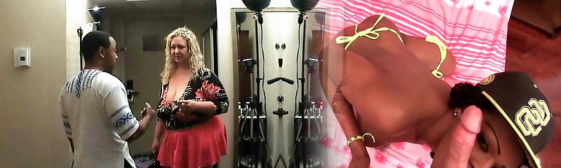 Fat blonde with big saggy fun bags stumbles onto a BBC porno set