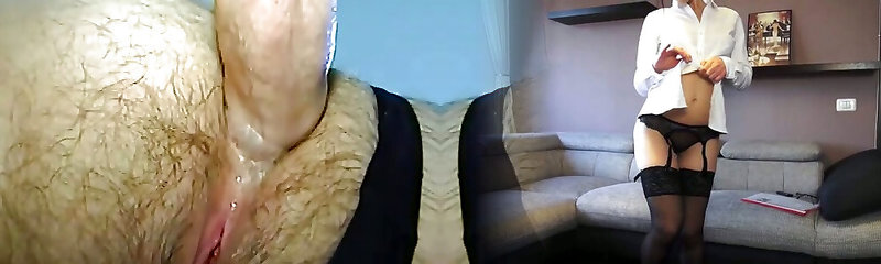 Mature MILF loves to wank her hairy pussy when a stranger is watching her on webcam. Big natural tits and humungous ass.