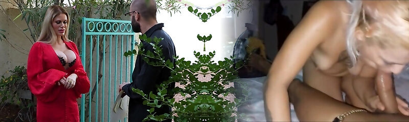 Big milk cans platinum-blonde wife Protia Paris on her knees giving a blowjob
