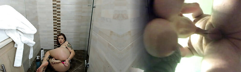 A Girl with Big Bumpers Jerks off a Dildo and Then Sticks It in Her Coochie and Cums
