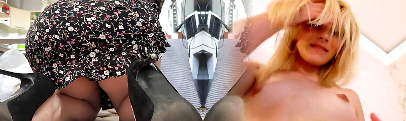 Blonde with sore booty and heels masturbates her shaved pussy