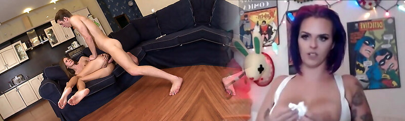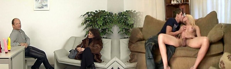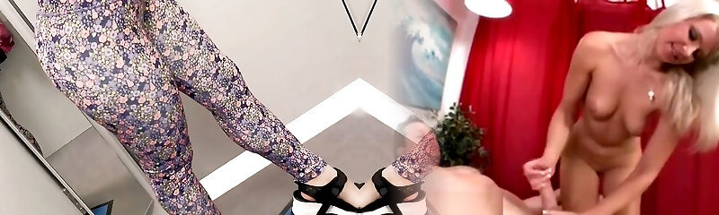 Very hot blonde cougar with ginormous natural tits fucked on couch