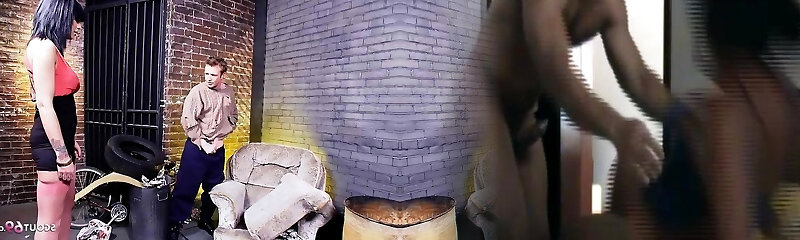 Boss has panties pulled pulled to the side tights ripped and fucked by blue collar worker