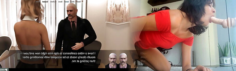 Secretary bitch takes boning her pussy and mouth with 2 dildo
