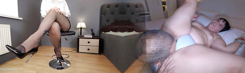 Mature dame seduces her skinny employee and have lesbian fuckfest in the office