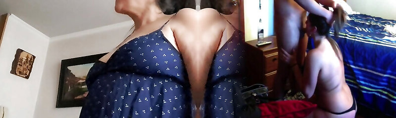 Old granny with big saggy natural boobs pleasing big young