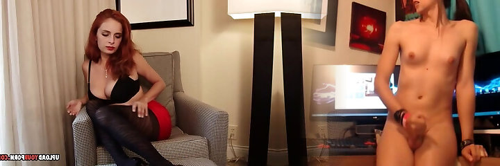 A good slave lies in red pantyhose and waits for Madame to take care of him