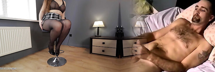 Horny stepmom in pantyhose loves my jism on her natural milk cans