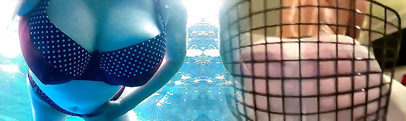 Buxomy fine slut playing at the pool