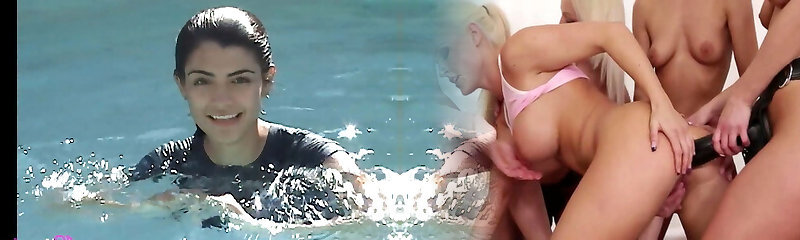 Watch the sexiest girls swim nude in the pool