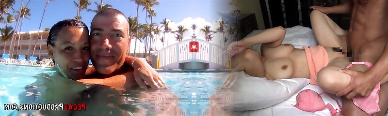 Young woman with monstrous pussy lips has multi orgasms mastrubbing and nailing her bf at the Hotel Pool