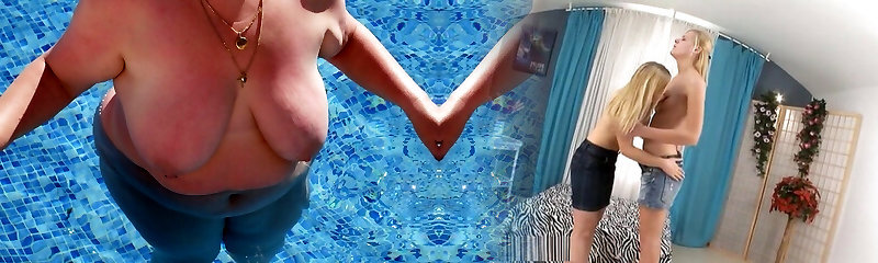Bi Friends in pool share big boobed lesbians