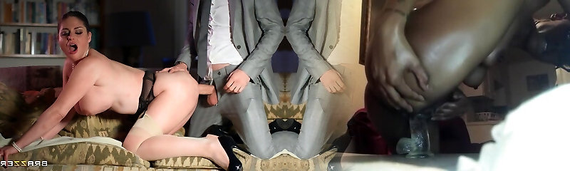 Gonzo MMF threesome with Sheena Ryder wearing stockings