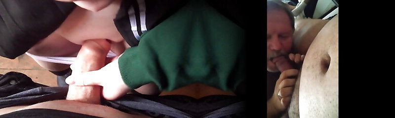 Trampy wife enjoys her lover's huge cock and shows him her hairy pussy and concludes up blowing cock