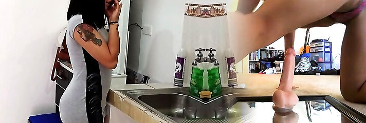 Nasty Stepmom has a mouthful of thick cum from spraying Dildo