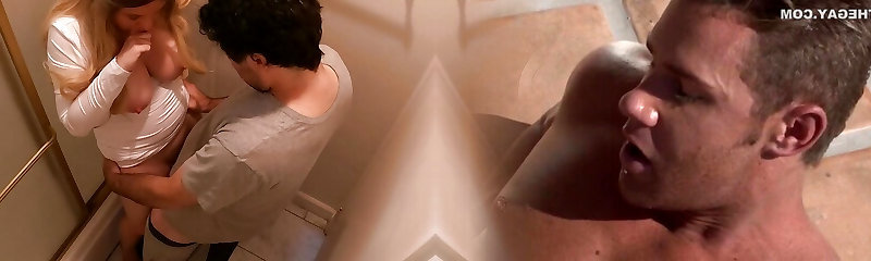 Stepmom and son have a secret rendez-vous in the bathroom during a family dinner