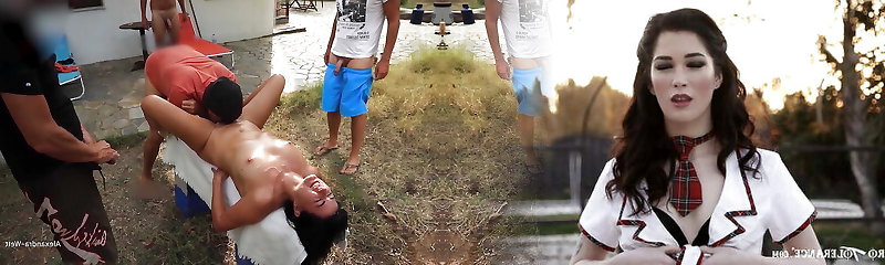 Puny boobs girl Candy Cat finally gets a threesome fucking