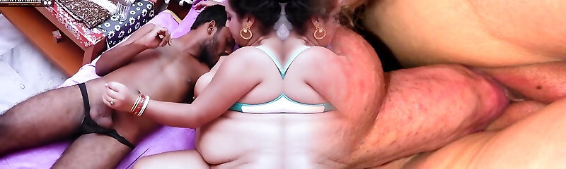 Desi Cheating husband caught by wife!! Family threesome hump with Bangla audio
