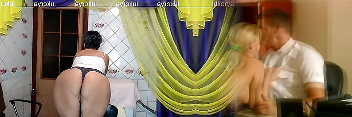 Lukerya is bored again in the kitchen in ebony and milky lingerie