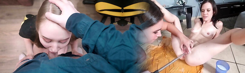 Teen hot girls riding a hard and loaded big pipe in the room
