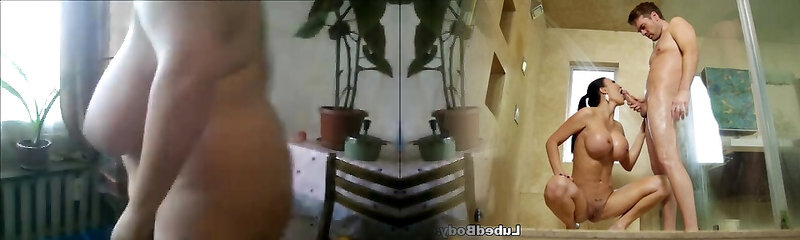 HOT MILF Stepmom Clean her pubic hair & shower in bathroom while Stepson saw her Big Tits & Bootie then Stepmom nail him - spunk both