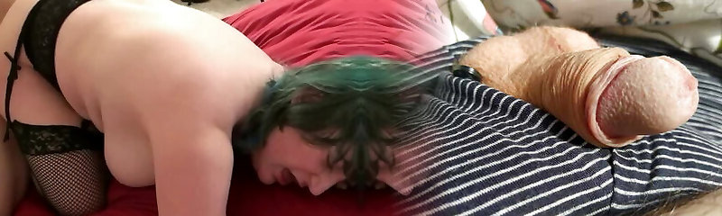 Chick in green wig lets her Beau be sucked by slutty busty plump brunette