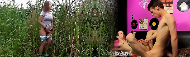 Skinny blonde amateur teen slobbers on a fat co